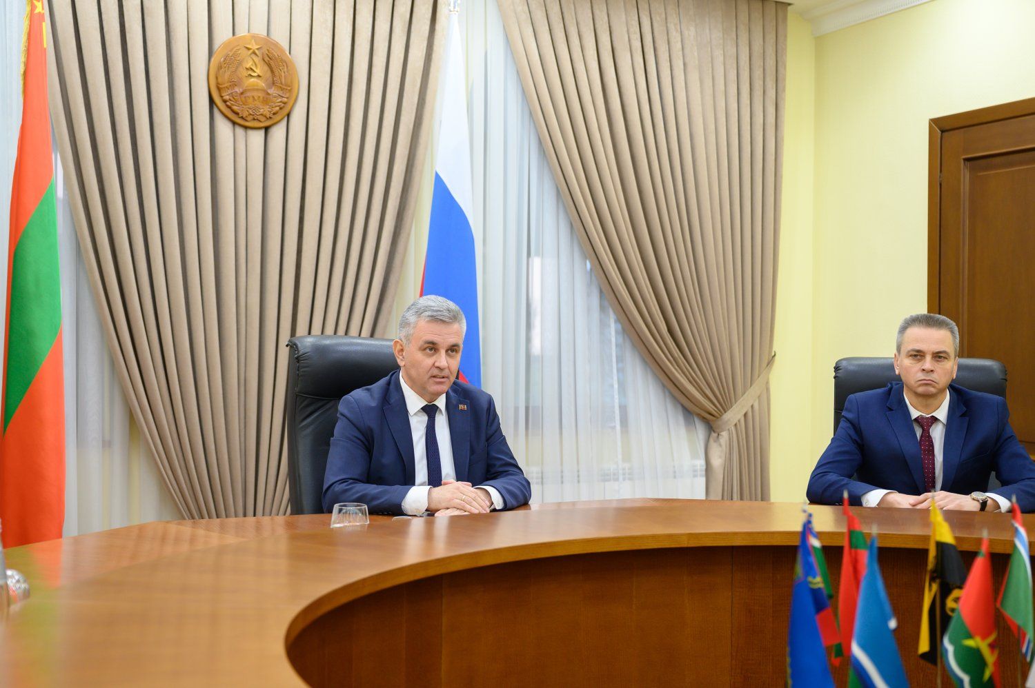 The PMR President Vadim Krasnoselsky addressed the diplomats with congratulations, gratitude for their service, and parting words. He urged them to prioritize the interests of the state and the people. He highlighted among the tasks the adoption of measures to resume a full-fledged negotiation process, filling the agenda with realistic issues, and facilitating the successful conduct of the peacekeeping operation. Vadim Krasnoselsky emphasized that the strategic goals of Pridnestrovian diplomacy and the entire Pridnestrovian people are peace and independence.