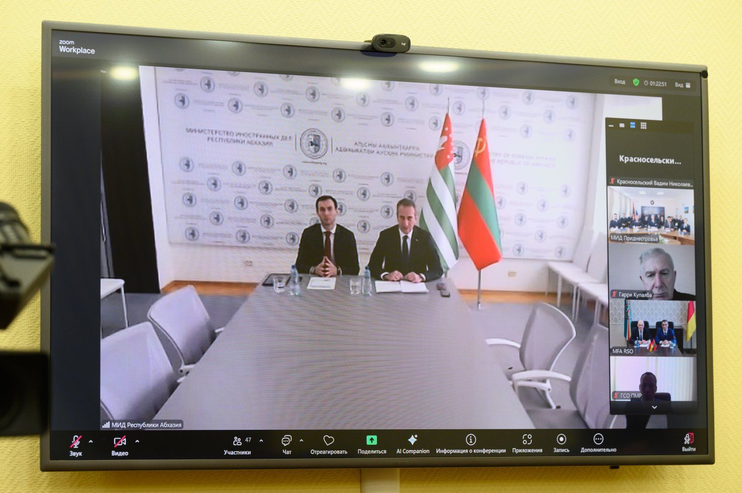 The heads of the ministries of foreign affairs of friendly to Pridnestrovie states – Abkhazia and South Ossetia – addressed the Collegium participants. Akhsar Dzhioev (Ministry of Foreign Affairs of the Republic of South Ossetia) congratulated his colleagues on their professional holiday. He spoke about the complex foreign policy situation and the priority of strengthening and developing relations between Pridnestrovie and South Ossetia. Foreign Minister of Abkhazia Oleg Bartsits emphasized that contacts between the two republics, despite existing difficulties, are intensive, systematic, and stable. He focused on the legal basis for cooperation between Pridnestrovie and Abkhazia, recalling the founding documents. The head of the Abkhaz Foreign Ministry emphasized that dozens of inter-municipal and interdepartmental agreements are in effect in addition to state-level agreements. Some were signed as early as 2026. Plans for further cooperation were discussed.